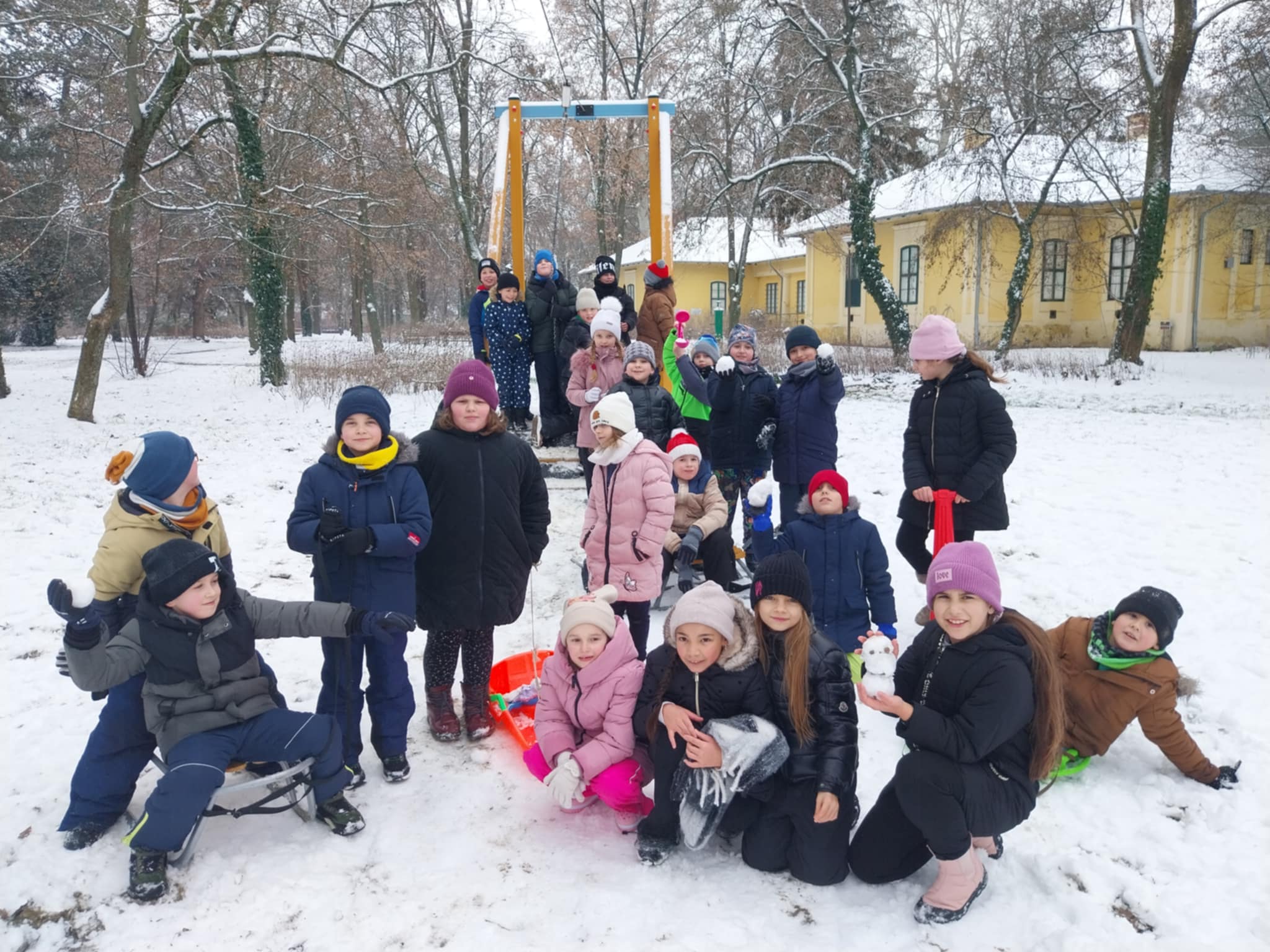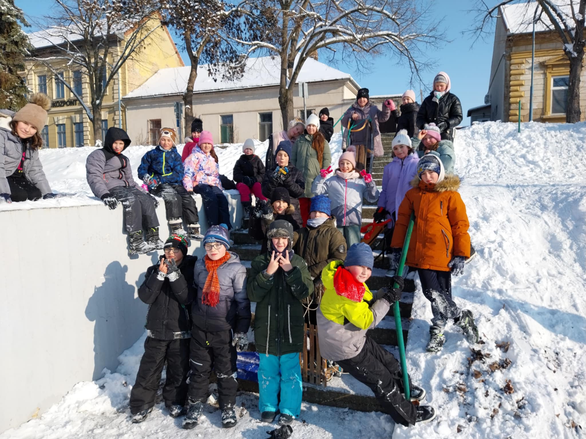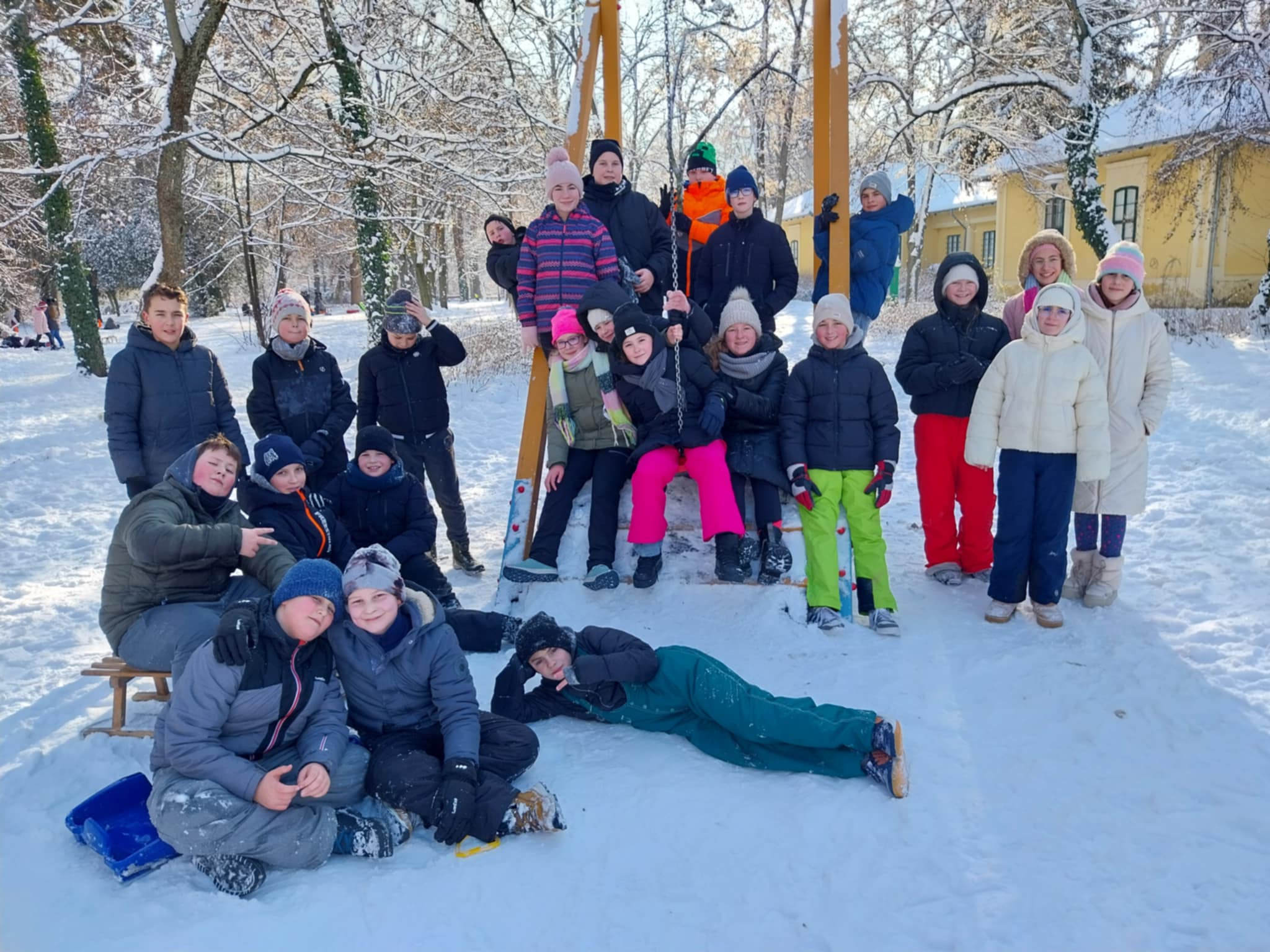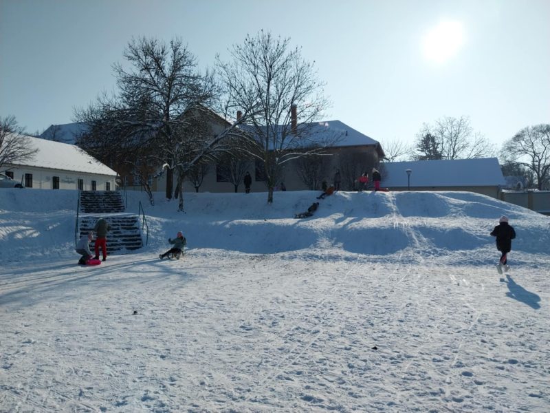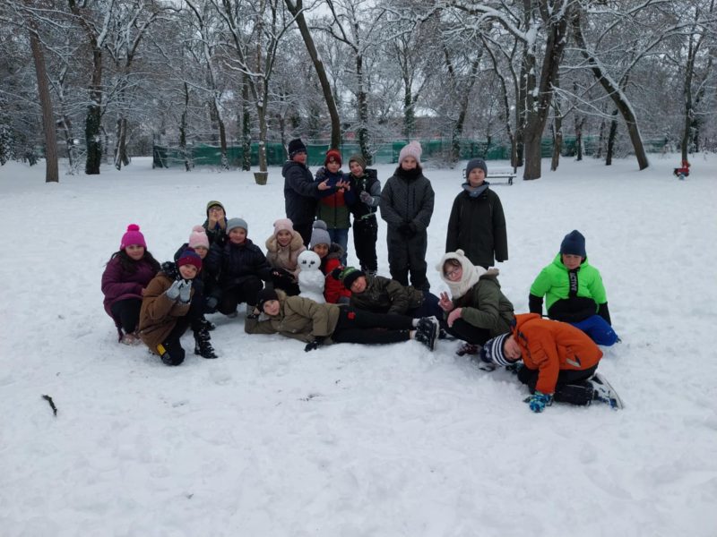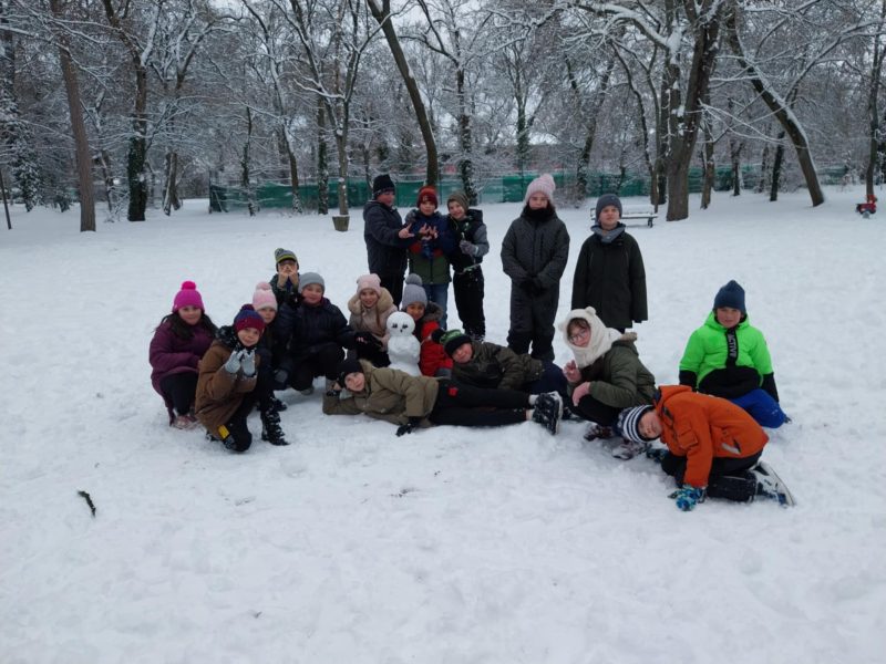 Testnevelés órai havas kalandok az iskola környékén.