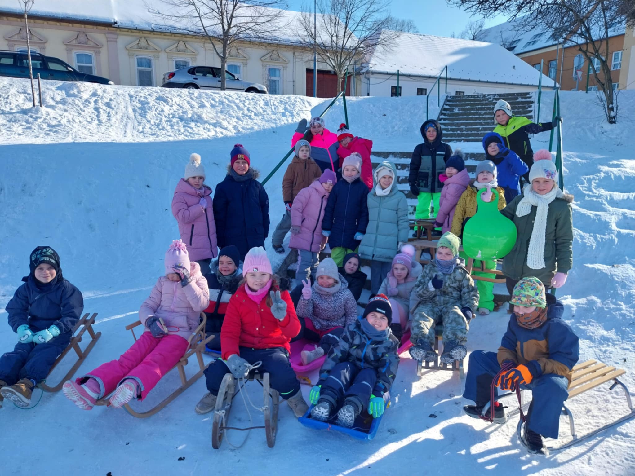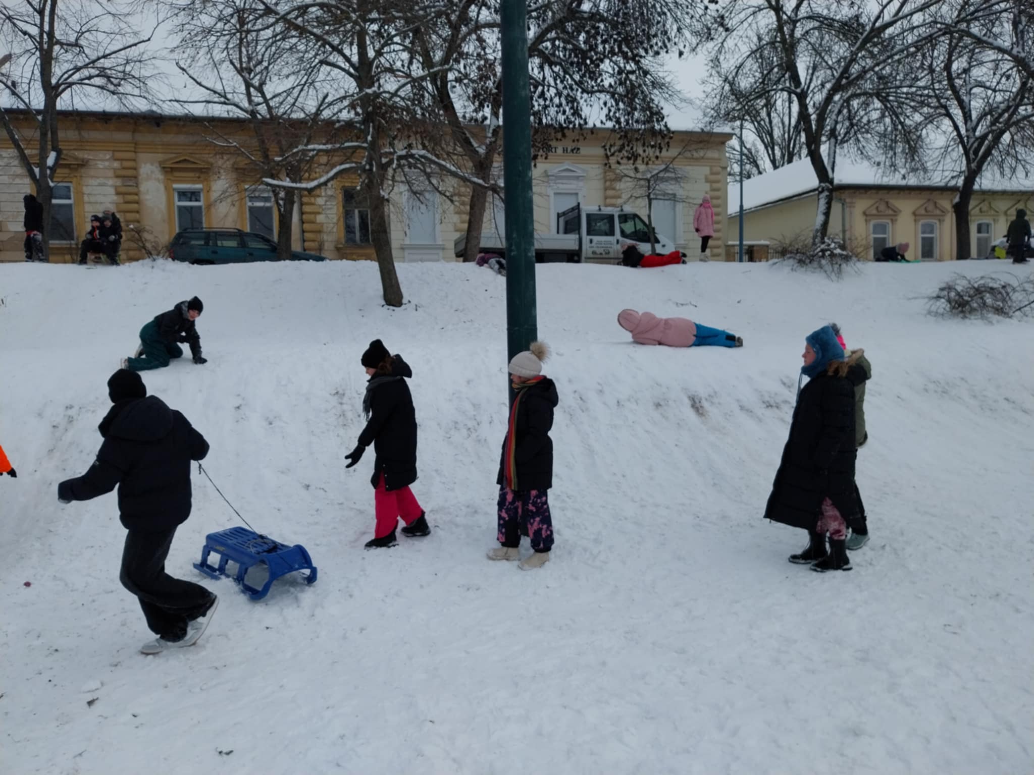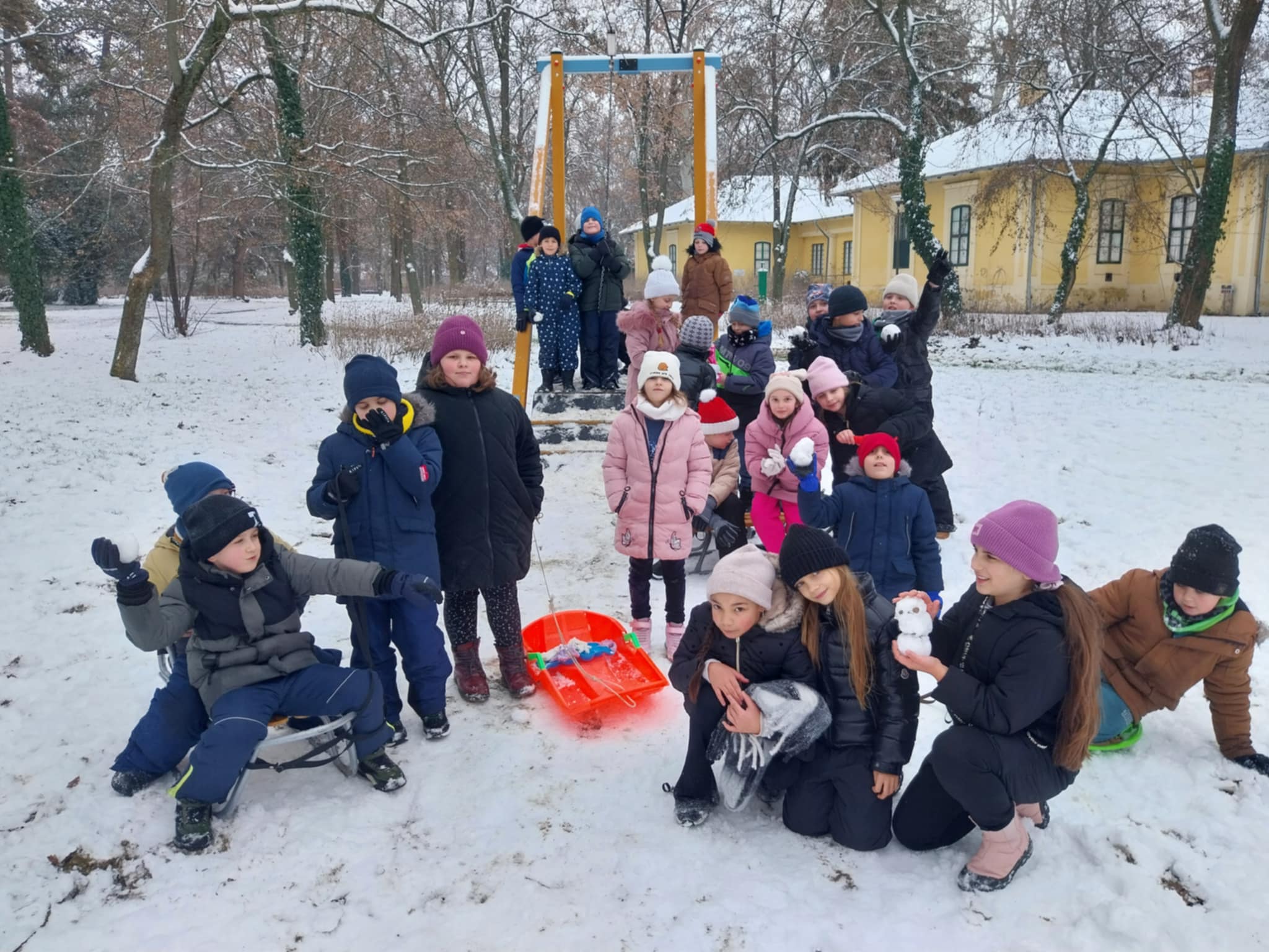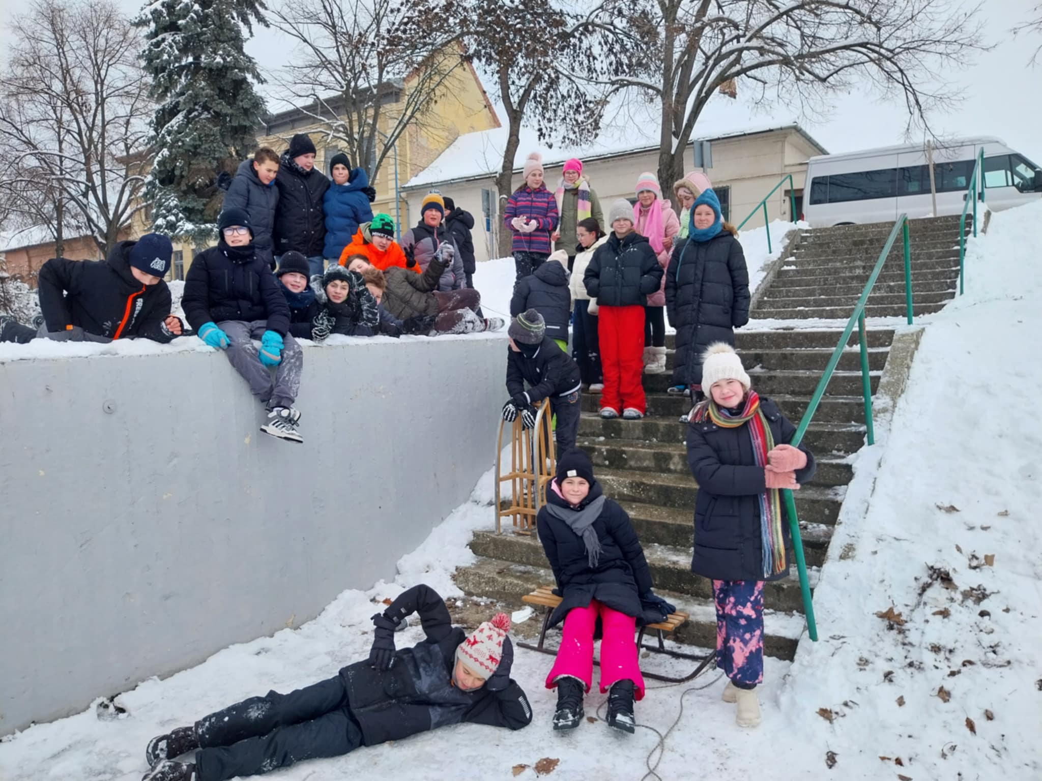 Testnevelés órai havas kalandok az iskola környékén.