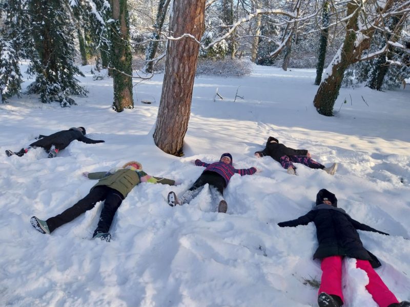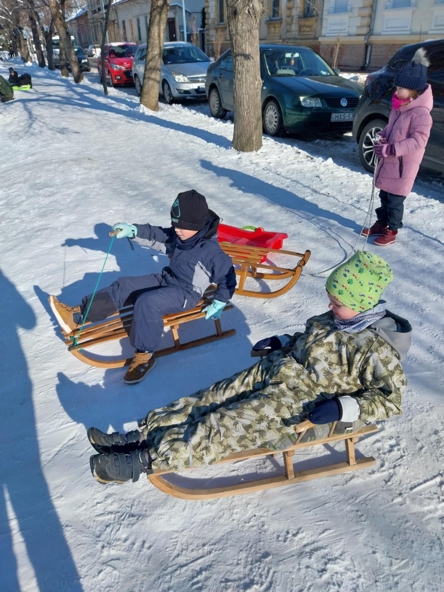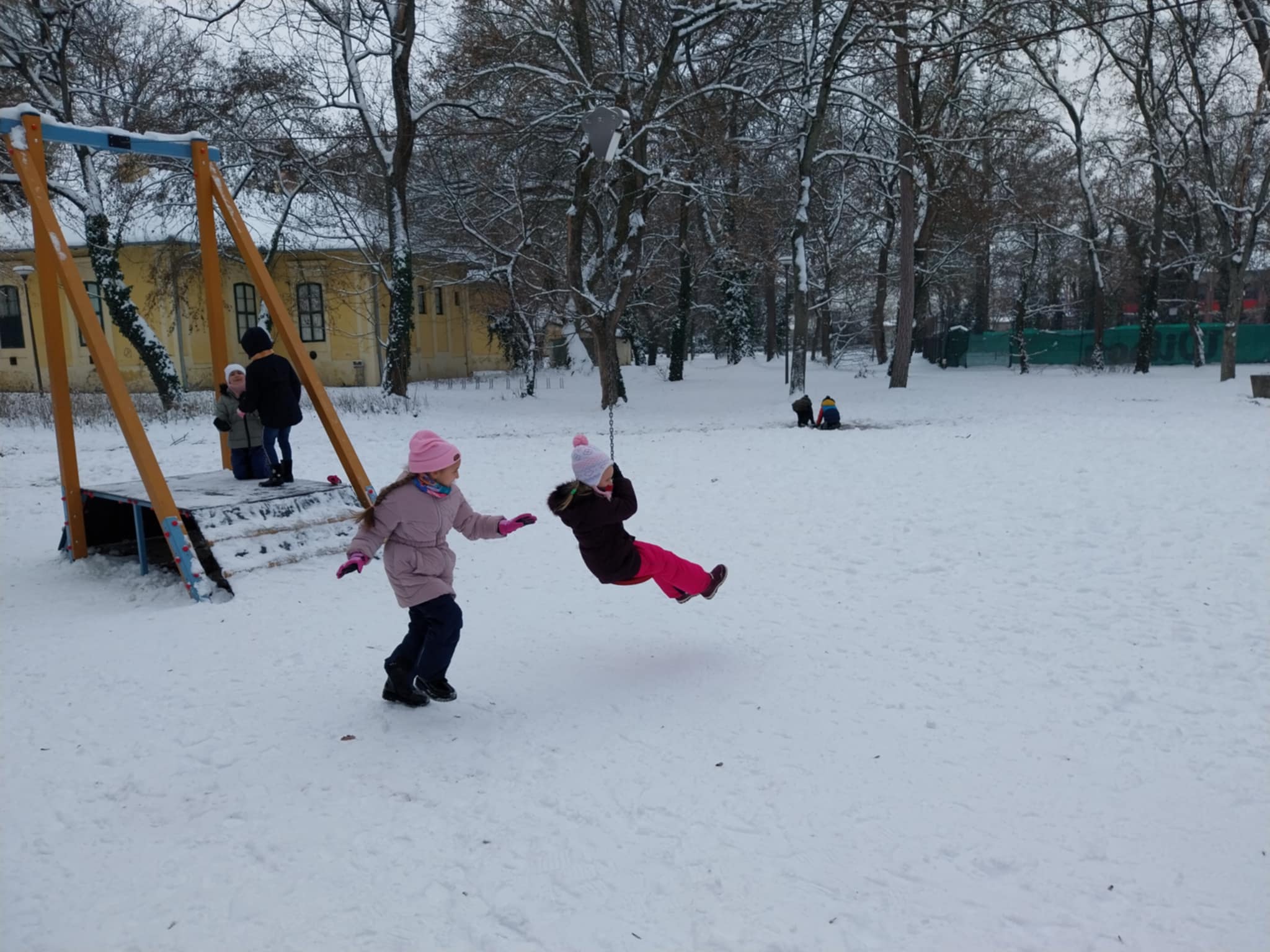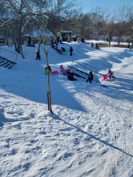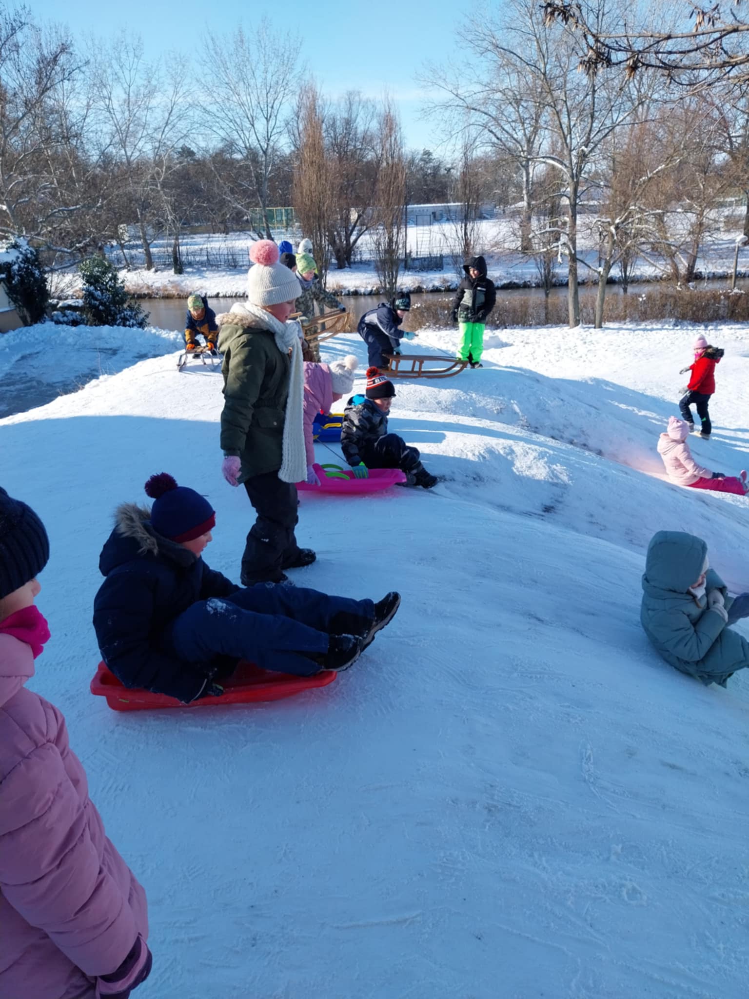 Testnevelés órai havas kalandok az iskola környékén.