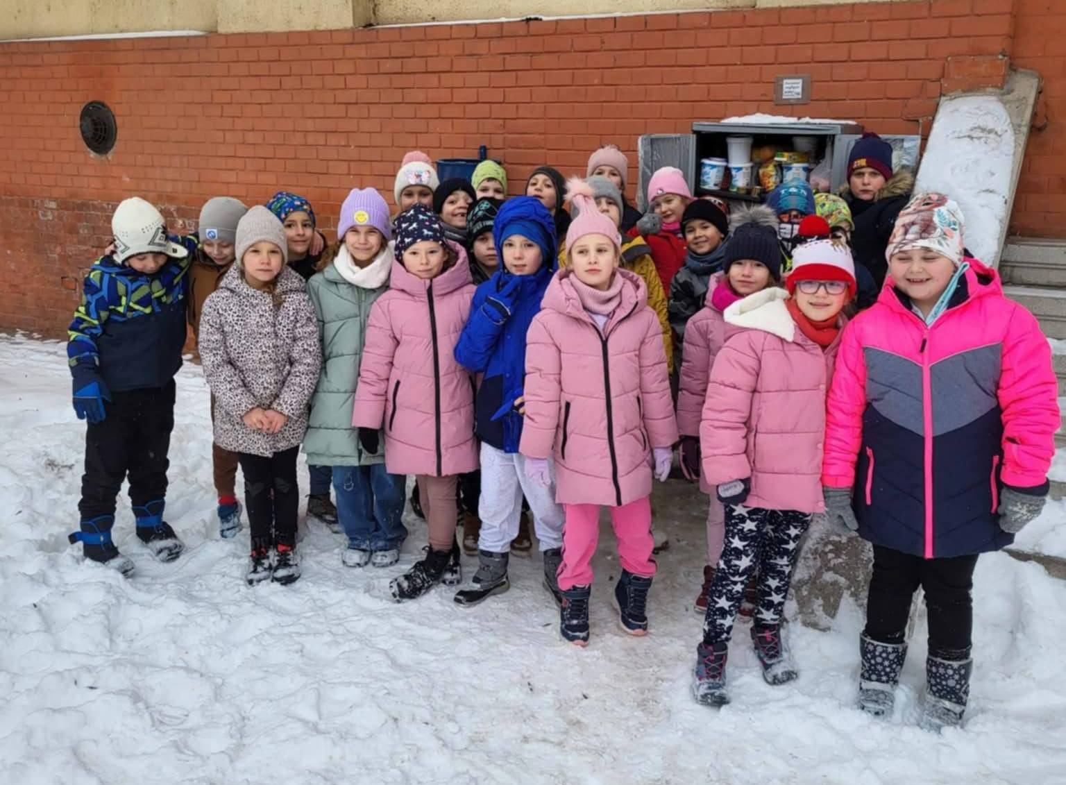 Meleg szívvel a nagy hidegben! Iskolánk 1.a osztályosai pénteken az Enni adok doboznál jártak.