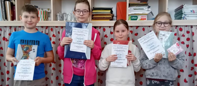 Komáromy Vilmos 7. osztályos tanuló 100 méter pillangó 4. helyezést 200 méter vegyes 2. helyezést ért el.