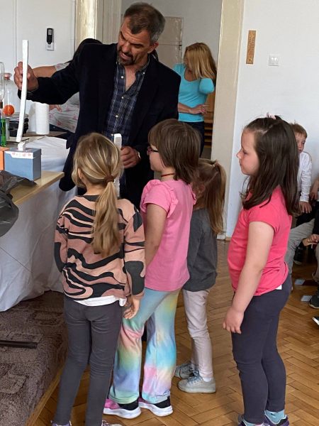 A végén finom falatokkal (többek között sajt, bagett) is elláttak minket. Nagy öröm és motiváció a gyerekeknek a nyelvtanuláshoz.