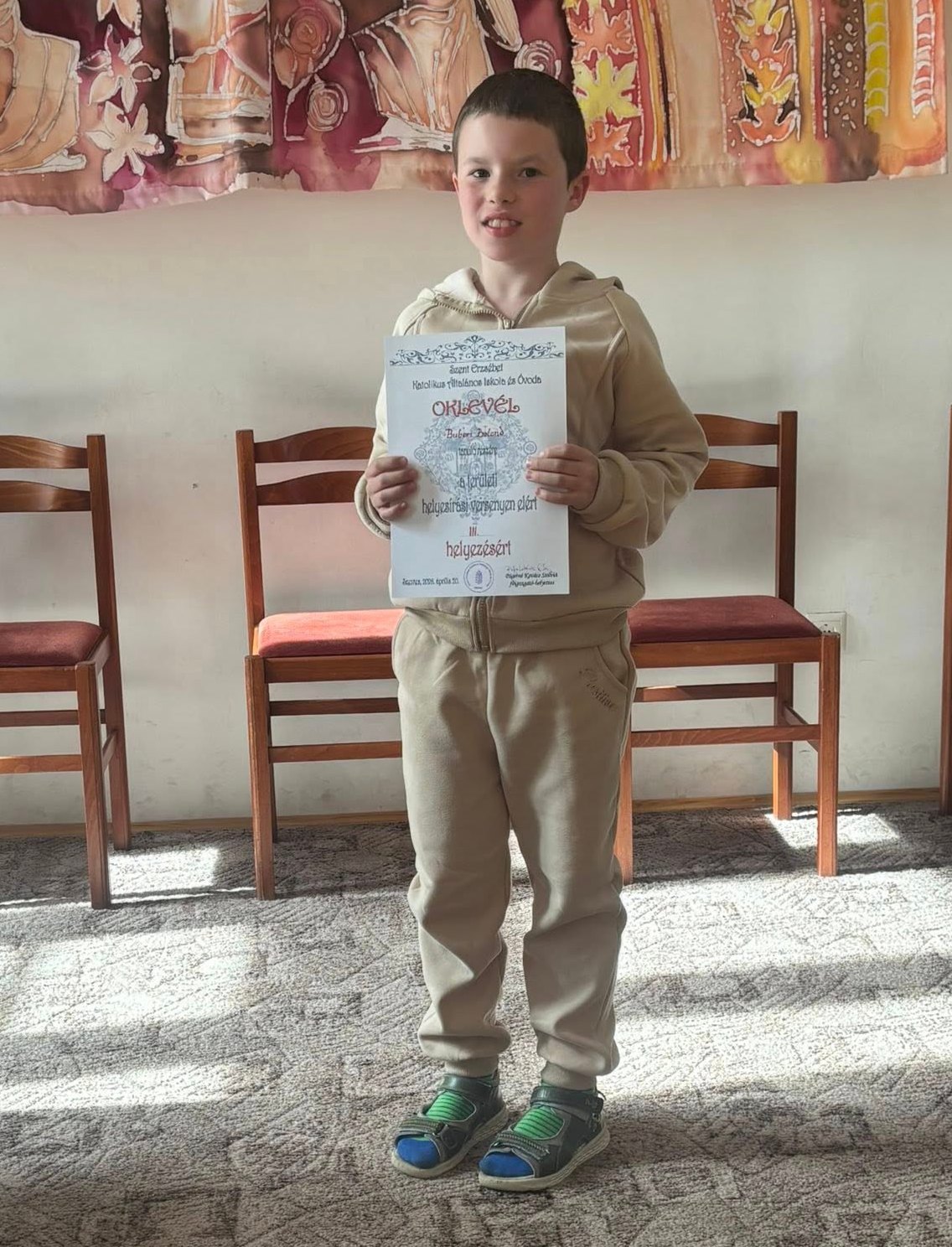 2. helyezett: Csenki Martin Arián, Szent Erzsébet Katolikus Általános Iskola és Óvoda, felk. pedagógus Ráczné Miskolczi Erzsébet