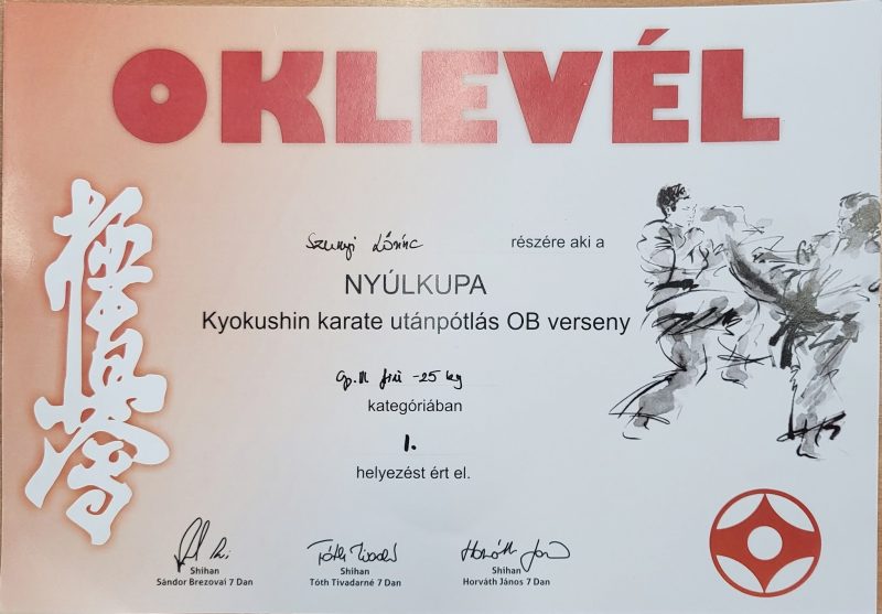 Iskolánk 1. a osztályos tanulója, Szunyi Lőrinc a hétvégén megrendezett NYÚLKUPA Kyokushin karate utánpótlás országos bajnokságon 1. helyezést ért el.