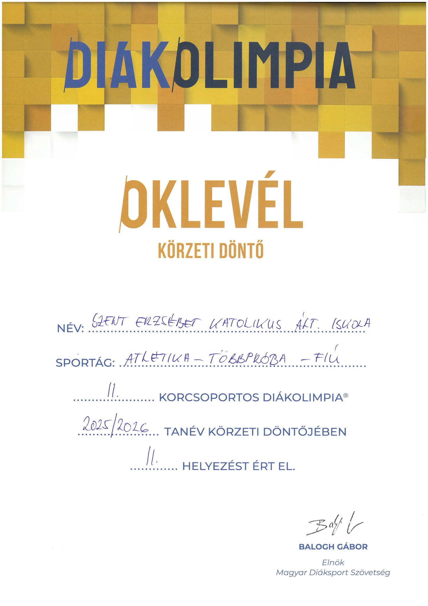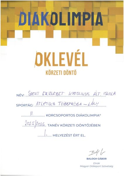 Körzeti diákolimpia atlétikaverseny eredményei: