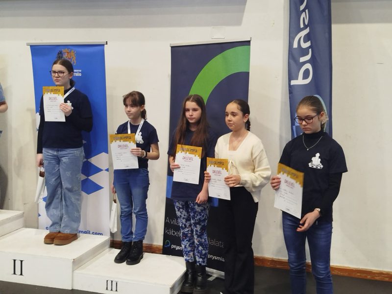 A lány I-es korcsoportban Csatári Kata (2. a), aki legelső versenyén vett részt, a pontok 50%-át gyűjtötte, azaz 3,5 ponttal lett korcsoportjában 5. helyezett.