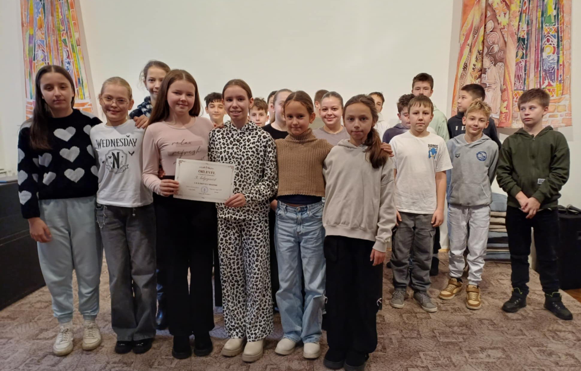 A Közönség-díjat – az alsós közösség szavazatai alapján – Gila Bercel 4.b osztályos diákunk érdemelte ki. Ez a díj azt mutatja, hogy a gyermeki szív felismeri és értékeli a megindító, őszinte művészi kifejezést.